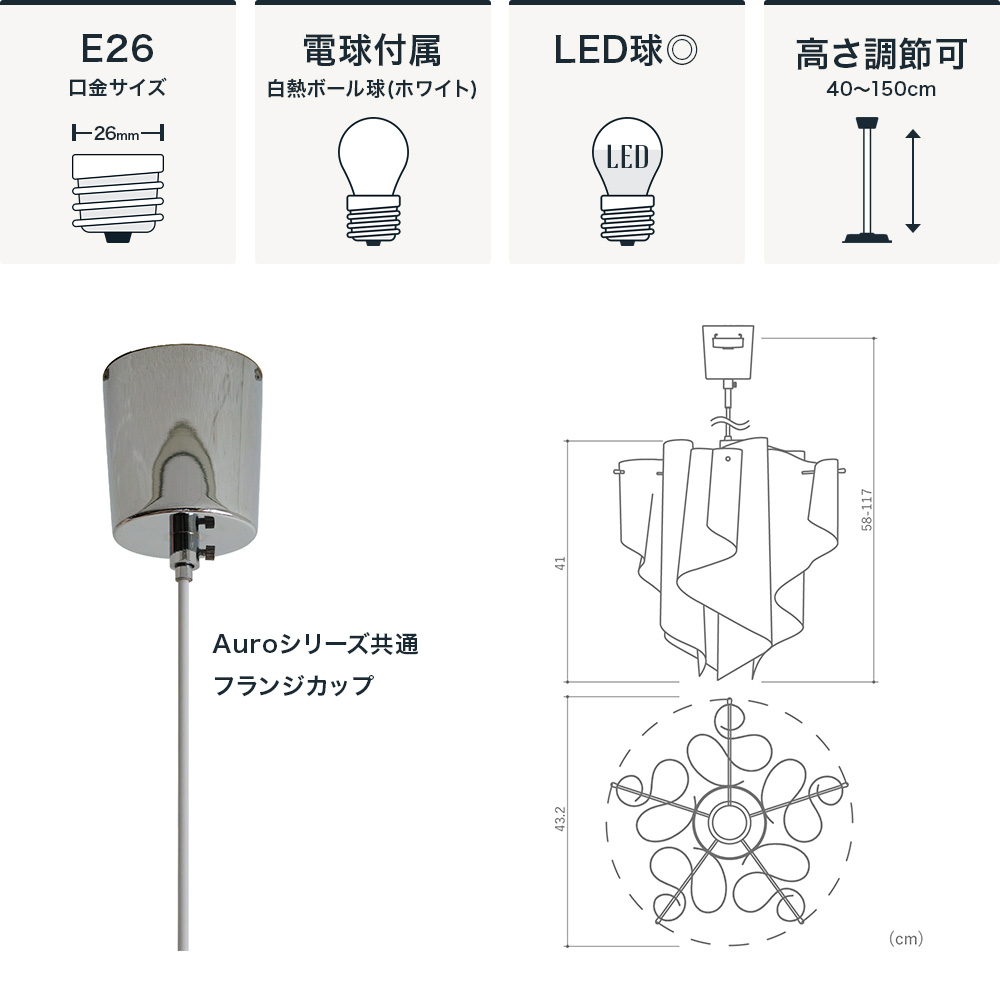 天井からシェード下までの寸法(全高):最短58~最長117(cm) ※高さ調節可能 |