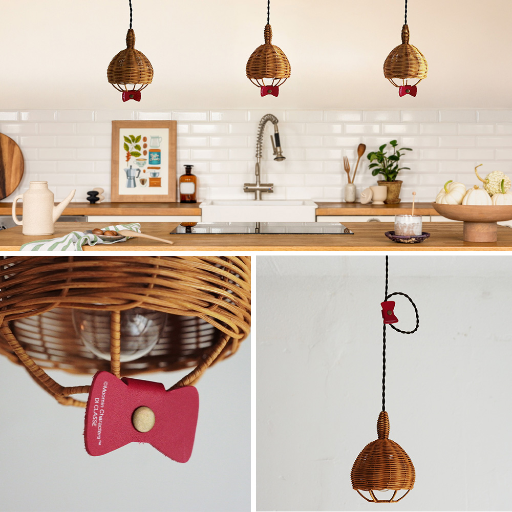 ムーミンの大人気キャラクター「リトルミイ」をイメージしたペンダントランプをデザインしました。ラタンで編み込んだリトルミイのおだんご頭をイメージ。真っ赤なリボンがアクセントになっています。